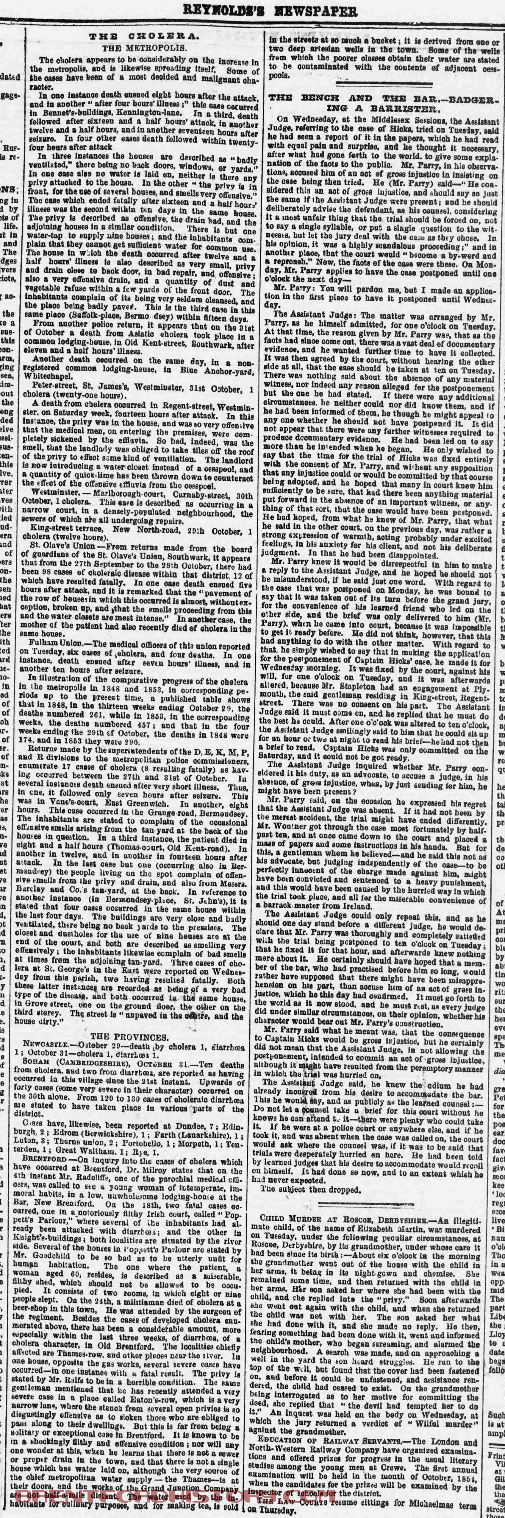 Cholera 1853 Reynolds Extract